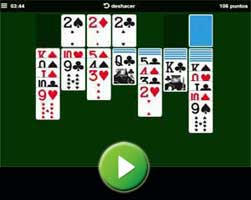Solitario Klondike. Klondike Solitaire. Consigue emparejar e ir eliminando todas las cartas del solitario clásico o klondike, formando grupos de 4 pilas (8 en el caso del solitario klondike doble). Completa en juego limpiando el tablero de cartas, en el menor tiempo posible o antes que se agote el tiempo. Elije entre dos niveles de dificultad: Solitario klondike nivel fácil (extraer 1 carta) y solitario klondike nivel avanzado (extraer 3 cartas).