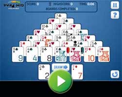 Solitario Pirámide. Pyramid Solitaire Game Play. Dependiendo del tipo de juego, deberemos ir eliminando las cartas que sumen 13 (desde el as que vale 1 hasta el rey que vale 13) o también aquellas que sean correlativas tanto en orden ascendente como descendente. El objetivo final del juego será, por tanto, limpiar la pirámide de cartas.