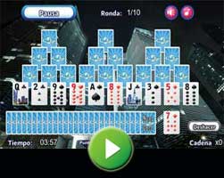 Solitario Pirámide. Skyscraper Solitaire. Dependiendo del tipo de juego, deberemos ir eliminando las cartas que sumen 13 (desde el as que vale 1 hasta el rey que vale 13) o también aquellas que sean correlativas tanto en orden ascendente como descendente. El objetivo final del juego será, por tanto, limpiar la pirámide de cartas.