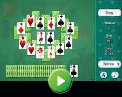Solitario Pirámide. Tripeaks Solitaire. Dependiendo del tipo de juego, deberemos ir eliminando las cartas que sumen 13 (desde el as que vale 1 hasta el rey que vale 13) o también aquellas que sean correlativas tanto en orden ascendente como descendente. El objetivo final del juego será, por tanto, limpiar la pirámide de cartas.